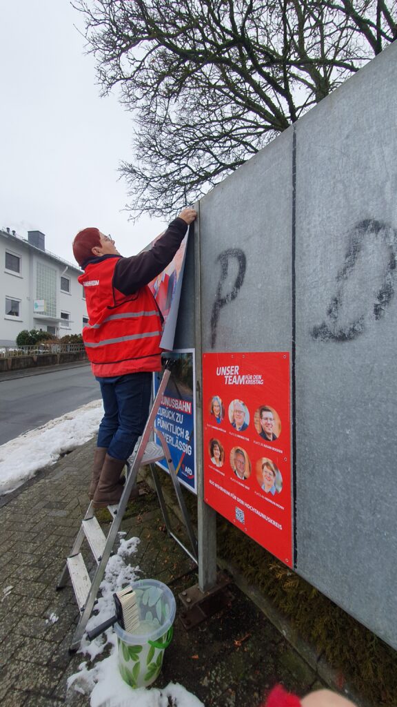 Am Samstag haben unsere Genossinnen Judith und Kerstin die Plakatwände mit unseren Plakaten bestückt. Von Obernhain über Pfaffenwiesbach, Friedrichstal und Wehrheim finden sich jetzt unsere roten Plakate. Wir freuen uns über interessierte Leserinnen und Leser. Wer sich unser Wahlprogramm durchlesen oder sich über unsere Kandidierenden informieren möchte, kann dies hier auf unserer Homepage tun.